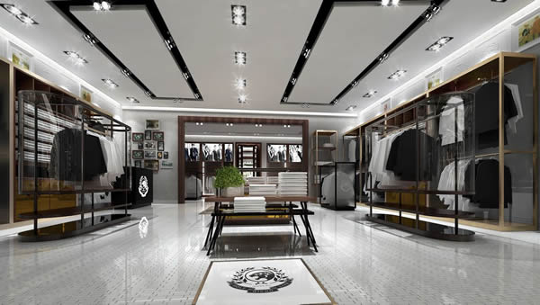 男裝店的裝修風格一般要顯示出男士的審美觀與品位,其色調上一般采用白色、黑色或者金屬相互協調搭配,不需要過多的鮮艷或繁雜,通常以現代簡約為主,在視線感觀上,寬敞、開放式的空間可以更好引發男士購物的欲望。