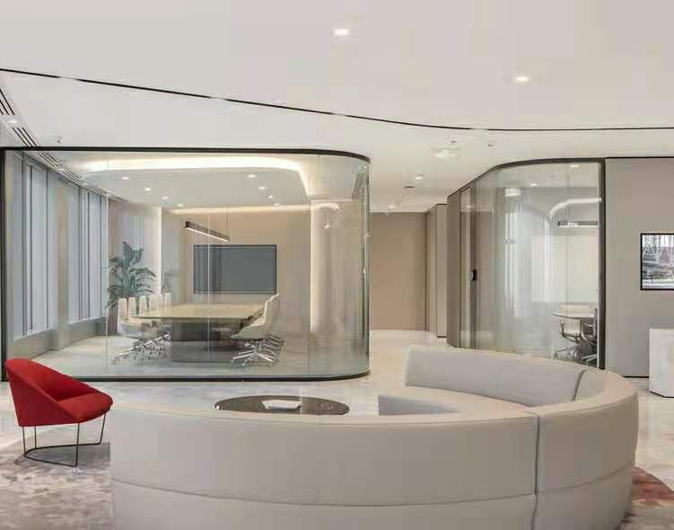 首先是空間,弧形的玻璃隔斷可以帶來(lái)更加寬敞的空間,并且沒(méi)有棱角的玻璃隔斷,更加的優(yōu)美、柔和,弧形玻璃散發(fā)出來(lái)的輕盈感,使得公司員工可以更加舒心地進(jìn)行工作,大大地增加了工作的效率和質(zhì)量。